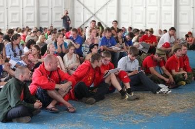 Ключевым событием визита стало общение с участниками форума. Оно проводилось в специальном шатре для лекций и длилось более полутора часов. Несколько сот ребят и девчат выслушали рассказ Д.Г. Новикова о деятельности КПРФ и о позиции партии в связи с требованием отставки правительства страны. Особое внимание было уделено причинам резко критического отношения коммунистов к тому варианту «реформирования» государственных академий наук, что предложил действующий кабинет министров.