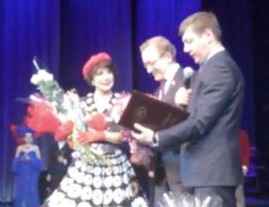 Д.Г. Новиков поздравил от имени Г.А. Зюганова организатора конкурса «Романсиада» Г.С. Преображенскую с юбилеем