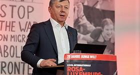 Немецкое левое издание «Junge Welt» по сложившейся уже традиции начало новый год проведением международной конференции. В этом году открыть её работу, выступив с первым получасовым докладом был приглашён заместитель председателя ЦК КПРФ Дмитрий Новиков. По его собственному признанию, своей главной целью он ставил предложить участникам ключевые идейно-теоретические и политические оценки КПРФ современного империализма.