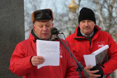 На митинге выступили первый секретарь Вологодского областного комитета КПРФ Александр Морозов, первый секретарь Вологодского городского комитета КПРФ Олег Савельев, коммунисты Николай Жаравин, Сергей Городишенин, Елена Ракова, жители города. Александр Морозов вручил партбилет недавно принятой в ряды КПРФ Галине Масловой.