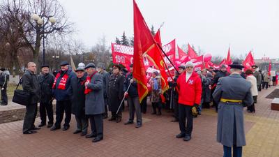 Сегодня празднование Великой Октябрьской социалистической революции проходит в условиях нарастания борьбы братского народа Новороссии против фашистской диктатуры последователей украинских нацистов. Коммунисты оказывали и будут оказывать поддержку народу Донбасса в стремлении отстоять свои трудовые и национальные права.