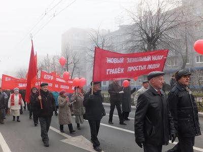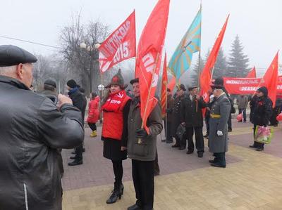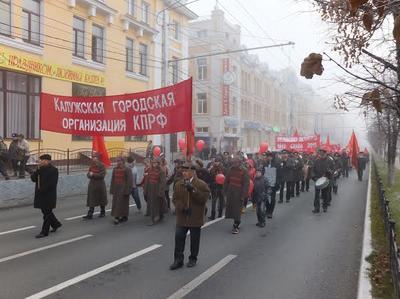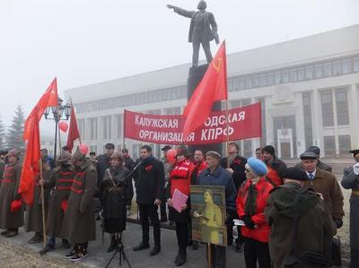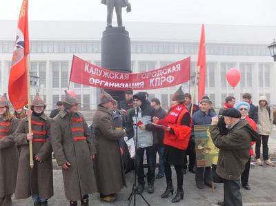 В честь 98-летия Великой Октябрьской социалистической революции Калужским городским комитетом КПРФ совместно с Ленинским коммунистическим союзом молодежи, Движением в поддержку армии, организацией «Дети войны», советом рабочих и служащих города были проведены торжественное шествие и митинг.
