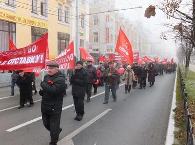 Коммунисты вышли на митинг с лозунгами: «Великому Октябрю — слава!», «КПРФ требует снижения тарифов на ЖКХ», «Детям войны — государственную поддержку!», «Рабочий класс! Стань атакующим!», «Новый земельный налог – грабеж простых людей!», «Антикризисные меры правительства оказались блефом», «Правительство Медведева – в отставку!», «Богатство недр – народу, а не Газпрому», «ЕР – верни питание школьникам!».