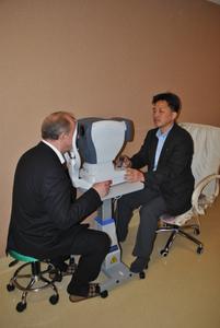 Побывали мы и в современнейшем офтальмологическом центре «Рюгён». Больница, где проверяют зрение, подбирают очки и линзы, лечат катаракту, глаукому, заменяют хрусталик, делают различные операции, включая лазерную коррекцию зрения. Чтобы получить право делать операции, корейцы должны отучиться в общей сложности 9 лет (6 лет университета и 3 года практики при больнице). Это лучшая глазная клиника в КНДР, где бесплатно лечат людей со всей страны. Приём идёт в порядке живой очереди, которая почти у каждого кабинета хотя и есть, но не очень большая. Здесь и амбулаторное лечение, и стационар. В четырёхместных палатах имеются душ, телевизор и холодильник. Для самых маленьких пациентов — игровые комнаты.