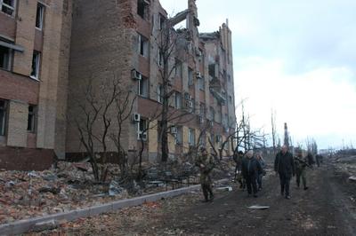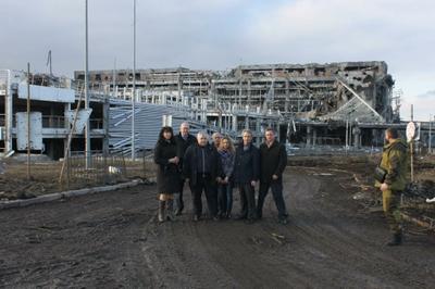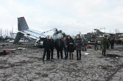 Одним из осмотренных объектов стал Международный аэропорт «Донецк» имени С. Прокофьева, бои за который велись с 26 мая прошлого года. На территории аэропорта нам удалось познакомиться с полевым командиром с позывным «Гиви». Это чрезвычайно принципиальный, смелый, волевой, мужественный человек, который мастерски руководит ополченцами из своего отряда. За мужество и стойкость депутаты Госдумы наградили его медалью 70 лет Победы в Великой Отечественной войне и вручили копию Знамени Победы.