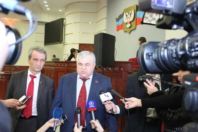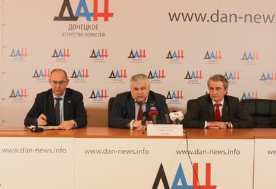 По окончании заседания в пресс-центре ДАН состоялась совместная пресс-конференция депутата Народного Совета ДНР, лидера Коммунистической партии ДНР Бориса Литвинова и депутатов Государственной Думы РФ, членов фракции КПРФ Казбека Тайсаева и Владимира Родина.