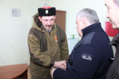 На следующий день делегация выехала в Луганскую Народную Республику, где прошли встречи с лидером казаков Луганска Павлом Дремовым, командиром подразделения Призрак Алексеем Мозговым, главой Парламента ЛНР Алексеем Карякиным, премьер-министром Правительства ЛНР Геннадием Цыпкаловым, министром образования, науки и культуры Лесей Лаптевой. По завершении встреч были вручены награды 70 лет Победы в Великой Отечественной войне и копия Знамени Победы.