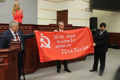 В заключение донецким парламентариям была передана копия Знамени Победы и вручены часы с изображением Генералиссимуса Советского Союза Иосифа Виссарионовича Сталина. Стороны поблагодарили друг друга, наметив при этом дальнейшее продолжение взаимного сотрудничества.