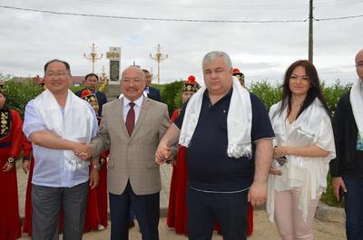 Прибывшую из Волгограда делегацию встречали по калмыцким обычаям на въезде в столицу региона, у памятника воинам 28 Армии. Девушки и юноши в национальных костюмах накинули гостям на шеи хадаки – белые шарфы, символизирующие чистоту, доброту и бескорыстие.