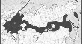 "Newsru.com". На рис.: Зоны ускоренного вымирания русских к 2020 г. (где два гроба - на одну колыбель). Данные В.Башлачева