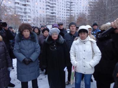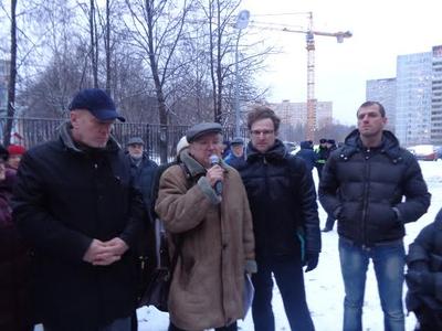 В субботу, 12 декабря 2015 года (символично, что в день Конституции "новой" России), прошел очередной митинг протеста жителей против строительства коммерческого "небоскреба" по адресу: ул. Маршала Захарова, вл.7. Акция прошла при поддержке КПРФ. Ведущим митинга был депутат трех созывов МГД, секретарь МГК КПРФ Евгений Борисович Балашов.