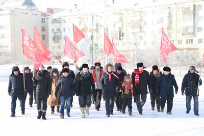 Коммунисты побывали на основных площадях Якутска и возложили цветы на площадях Победы, Марата и к памятнику воинам-интернационалистам.