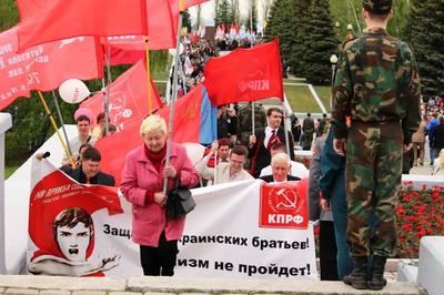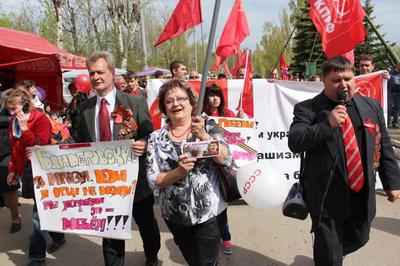 Активное участие в праздничных мероприятиях приняли коммунисты и их сторонники, которые принесли с собой десятки красных Знамен Победы, КПРФ, растяжки и транспаранты, посвященные Великой Победе советского народа над фашистской Германией, а так же поддержке братского народа Украины.