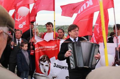 Надо отметить, что Ольге Алимовой и группе молодых коммунистов удалось первыми пронести красное Знамя Победы к величественному монументу «Журавли», опередив единороссов, уверенных в том, что, если они продали свою «душу» золотому тельцу и косолапому мишке, то получили карт-бланш быть везде первыми и главными.