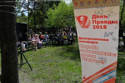 Неотъемлемой составляющей фестиваля с 10-летней историей «День Правды» является дискуссионная площадка, а поскольку 11-й День Правды был посвящен 100-летию комсомола, то в этот раз темой площадки была молодежная политика, история комсомола и будущее современной левой молодежи. Обсуждение привлекло депутатов и первых секретарей районных партийных организаций, опытных коммунистов и молодежь. Некоторые приехали даже из далекой Астрахани – как, например, журналистка «Астраханской правды» Екатерина Пинчук, которая рассказала о том, в каких условиях левая молодежь противостоит существующим порядкам – в городе ликвидировали муниципальный транспорт, нет даже трамваев и троллейбусов.