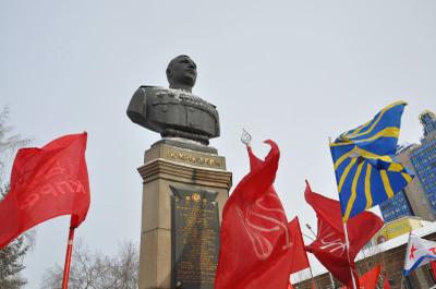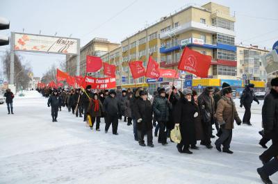 День Советской Армии и Военно-морского флота: Новосибирские коммунисты провели шествие по Красному проспекту