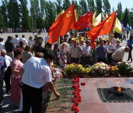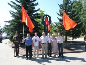 22 июня делегация Энгельсского РК КПРФ, комсомольцы, представители местных отделений Союза Советских офицеров и женского Союза «Надежда России» участвовали в общегородских мероприятиях, посвященных Дню памяти и скорби. Утром состоялось возложение цветов на старом кладбище к местам захоронения павших воинов. Затем делегация прибыла к обелиску Славы, стоящему на берегу Волги в городском парке. Люди, наблюдавшие за церемонией отдания почестей погибшим за советскую Родину героям, с подозрением посматривали на представителей «Единороссов», которые развалили то, что защищали погибшие воины, и которые без совести и стыда лицедействуют во всех патриотических мероприятиях. Также бесстыдно вели себя так называемые, «Молодогвардейцы» - Путинские питомцы, которые нахально, цинично присвоили себе название молодёжной организации, действующей в Краснодоне, члены которой погибали, защищая социалистическую, советскую Родину. Красные флаги КПРФ на церемонии возложения цветов к обелиску Славы подчёркивали непрерывность традиций поколения военных лет и нынешних комсомольцев и коммунистов: бороться за независимую Родину, за народную власть, за СОЦИАЛИЗМ! Память о защитниках социалистической Родины навсегда сохранится в наших сердцах!