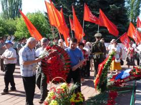 Чтобы почтить память павших в боях за Родину саратовские коммунисты приняли участие в общегородских памятных мероприятиях. На Воскресенском кладбище прошла церемония возложения венков и цветов к мемориалу защитников Отечества. Собравшиеся почтили память погибших в Великой Отечественной войне минутой молчания. В этом торжественном мероприятии приняли участие лидеры городского комитета КПРФ, депутаты гордумы: Г.А. Турунтаев, В.В. Сафьянов, А.И. Гришанцов,а также представители местных отделений Союза Советских офицеров, СКМ и женского Союза «Надежда России».