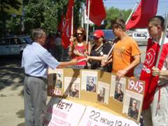 Накануне Дня памяти и скорби 21 июня комсомольцы Заводского района г.Саратова при поддержке старших товарищей провели пикет против непрекращающихся попыток фальсификации истории Великой Отечественной войны, пересмотра ее итогов и очернения воинского и трудового подвига советского народа, против безумного одностороннего разоружения и уничтожения боеготовности Вооруженных Сил Российской Федерации.