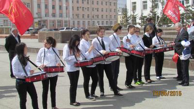 В честь 93-й годовщины Всесоюзной пионерской организации им. В.И. Ленина в Якутске на главной площади 19 мая состоялся торжественный пионерский сбор, посвященный 70-летию Великой Победы. В этот солнечный день пятьдесят мальчишек и девчонок надели красные галстуки.