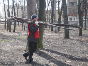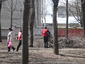 Прохожие улыбались участникам субботника, некоторые вступали в разговор. А тем временем кучи из сухих сучьев и прошлогодней листвы все росли.