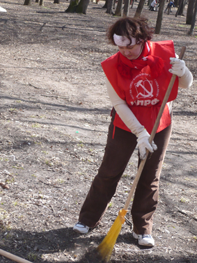 Своим приподнятым настроением и слаженной работой коммунисты заразили и представительницу городской власти, ответственную за уборку территории, которая также включилась в работу.