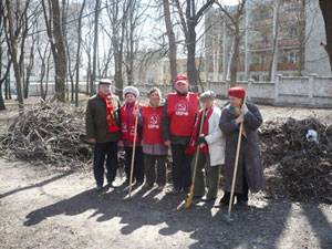 Группу КПРФ, делегированную на субботник, возглавил секретарь обкома по идеологической работе А.И. Жидков. Да и состав самой команды служит примером для многих: депутат областной Думы С.Г. Топильский и его помощник, два помощника депутата Государственной Думы, два секретаря и главный бухгалтер обкома КПРФ, четыре секретаря двух райкомов КПРФ, а также другие коммунисты-активисты.