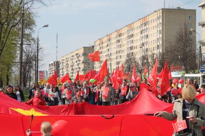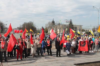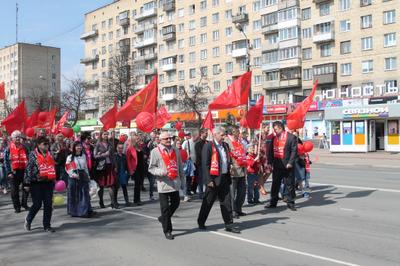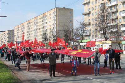 Митингующие собрались на Рижском проспекте у магазина «Маяк» и колонна праздничного шествия, украшенная флагами и шарами, под звуки лозунгов «Да здравствует 1 мая!», «Люди труда, объединяйтесь в борьбе за свои права!», «Мы выбираем социализм!», доносящихся из динамик, двинулась в сторону площади Ленина, где выступили представители партий и общественных организаций. Коммунисты, комсомольцы и сторонники партии несли транспаранты и плакаты, а горожане активно приветствовали демонстрантов. В голове колонны участники акции несли Красное Знамя Победы.