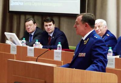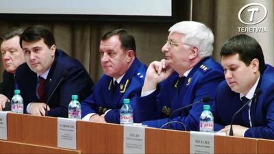 Председатель Тульской областной Думы Сергей Харитонов поблагодарил за многолетнюю добросовестную службу действующего прокурора Олега Черныша.