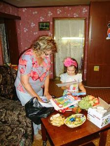 Среди вещей, необходимых каждому школьнику, Ольга Алимова привезла с собой и то, что очень любят дети – конфеты и печенья.