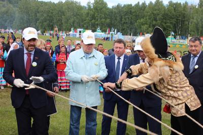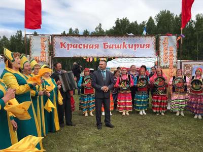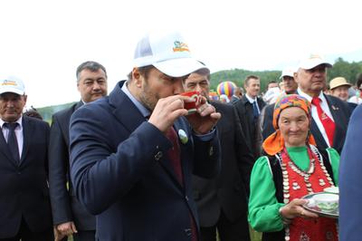 На следующий день делегация отправилась в Баймакский район. Здесь гости района также приняли участие в «Сабантуе». Александр Ющенко и Юнир Кутлугужин отведали местной пищевой продукции, а принимающая сторона познакомила их с материальной и духовно культурой своего района. А члены райкома КПРФ накормили гостей настоящим «Бишбармаком».