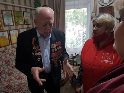 С цветами и продуктовой корзинкой коммунисты проведали и ветерана Великой Отечественной войны Ивана Петровича Тютерева, передав слова благодарности от депутата Госдумы Сергея Гаврилова за подвиг и мужество.