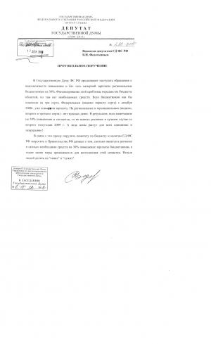 На заседании Госдумы 17 декабря депутат-коммунист Владимир Федоткин вновь предложил принять протокольное поручение о 30-процентном повышении оплаты труда региональным бюджетникам. В.Н. Федоткин (фракция КПРФ).– Уважаемые коллеги! В прошлую пятницу я внёс протокольное поручение, связанное с острой нехваткой средств на 30-процентное повышение оплаты труда региональным бюджетникам. К сожалению, оно не было поддержано. В выходные дни я выступал перед жителями города Рязани, одного из крупных сельских районов. И ещё раз убедился, насколько остра эта проблема.Я хочу вновь поставить данное протокольное поручение на голосование. Возможно за пять дней что-нибудь в душе коллег-депутатов изменилось. Ведь согласитесь, учителей, врачей, да и других бюджетников надо не только любить и уважать, им просто нужны деньги на жизнь.В связи с этим я прошу поручить Комитету по бюджету и налогам запросить в правительстве, чтобы были выделены необходимые средства в регионы для нормального 30-процентного повышения оплаты труда бюджетникам.