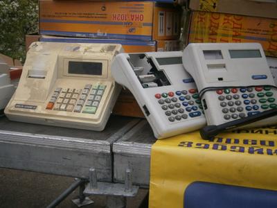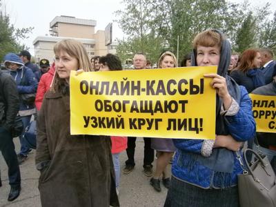 В знак протеста против требований повального введения онлайн-касс предприниматели принесли на митинг старые контрольно-кассовые машины. «Видите вот этот хлам? Вот это всё предприниматели должны выбрасывать и тратить десятки тысяч рублей на новые онлайн-кассы, на то, чтобы набить кому-то карманы, у кого бизнес на этом большой. Не зря у нас всё это придумывается», - сказал общественный деятель Дмитрий Плюхин.