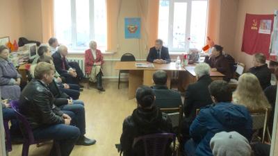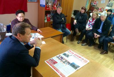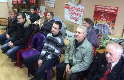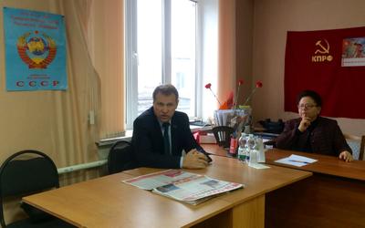 В ходе встречи депутат-коммунист Госдумы Александр Тарнаев рассказал о прошедшем праздновании 98-й годовщины Великой Октябрьской социалистической революции. Подняты вопросы о предстоящих выборах в Государственную Думу и методах борьбы с фальсификациями на них.