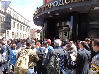 Перед заседанием у здания парламента в знак протеста против поправок собрались москвичи, кандидаты в депутаты и действующие депутаты Мосгордумы, депутаты Госдумы и представители оппозиционных партий.