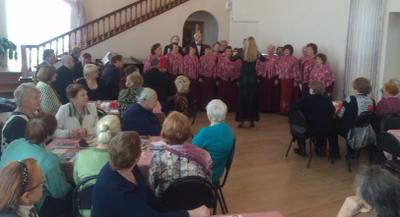 Для участников встречи выступили народные коллективы. Звучали песни военных лет, а легендарную "Катюшу" пели все вместе.