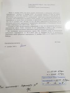 Как уже заявлялось, 4 декабря 2018 года в администрацию города Южно-Сахалинска было подано уведомление о проведении митинга за территориальную целостность Российской Федерации на 15-е число. На той волне патриотизма, которая проходит по всей стране, логично было ожидать от местных чиновников полную и безоговорочную поддержку населения в этом вопросе. На деле, администрация избрала тактику всячески блокировать эту акцию. Организаторы получили соответствующее письмо с отказом, мотивированным тем, что (якобы) на площади Победы 15 декабря пройдет мероприятие посвященное будущим играм «Дети Азии». По слухам – боятся упоминаний имени некоего Олега Кожемяко в рамках публичной акции.