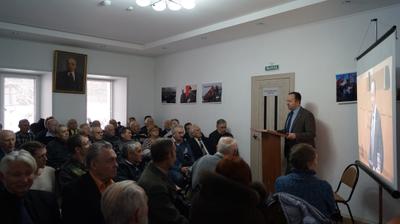 Свой доклад товарищ Симагин начал с того, что кратко рассказал об устройстве Государственной Думы, её функционировании и работе депутатов. Показал собравшимся фотографии своего рабочего места в зале Госдумы. Познакомил пришедших со своим рабочим графиком, согласно которому 2 недели в месяц он проводит в Москве и занят парламентской работой, оставшиеся 2 недели посвящает работе в регионе.