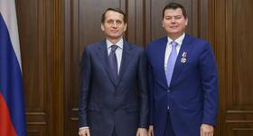 Председатель Государственной Думы Федерального Собрания Российской Федерации С.Е. Нарышкин в торжественной обстановке наградил заместителя Председателя Комитета ГД по земельным отношениям и строительству, депутата фракции КПРФ Михаила Юрьевича Авдеева Почетным знаком "За заслуги в развитии парламентаризма" за особый вклад в развитие законодательства и парламентаризма в Российской Федерации.