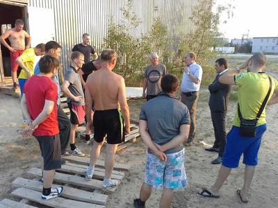 Далее совместно с руководителем спортивного клуба «КПРФ-Ямал», секретарем Коротчаевского первичного отделения КПРФ Алибеком Джебуевым В.Н.Тетёкин отправился смотреть помещение спортивного комплекса. Местные коммунисты решили отремонтировать его собственными силами с тем, чтобы организовать там занятия спортом по разным направлениям для обеспечения досуга молодежи и с тем, чтобы привить ей здоровый образ жизни. По прибытии в спортивный комплекс депутат увидел играющих в футбол представителей рабочих коллективов, которые были приятно удивлены его визитом и задали интересующие их вопросы по поводу работы депутата в его округе.
