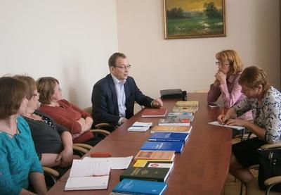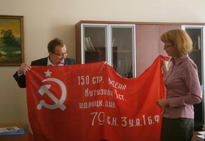 На встрече с коллективом депутат передал библиотеке и копию Знамени Победы.