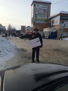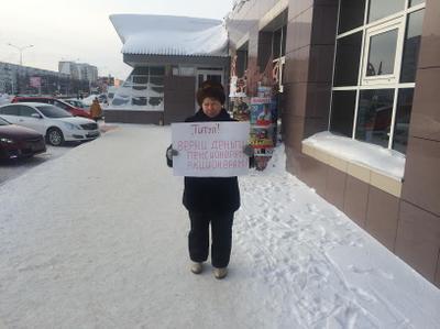На днях в г.Сургут Ханты-Мансийского автономного округа - Югры состоялась серия одиночных пикетов обманутых вкладчиков Публичного акционерного общества «Инвестиционная компания социальной защиты и развития малочисленных народов Севера «Титул». Пикеты прошли сразу в 5 точках города: на площади центрального рынка и площади Строителей, возле торгового центра «Росич» и магазинов «Исток» и «Престиж».