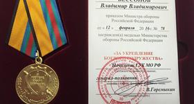 Депутат Госдумы Владимир Бессонов получил медаль от министерства обороны РФ. Об этом он рассказал на своей странице в социальной сети.