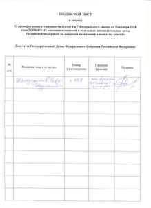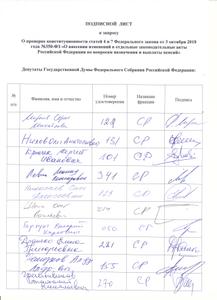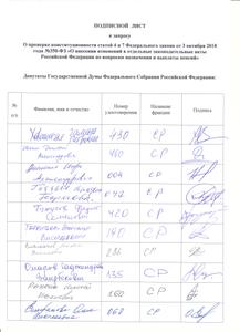 4. Подписной лист с подписями депутатов Государственной Думы Федерального Собрания Российской Федерации – 1 экз. на 11 л.; копия указанного подписного листа – 1 экз.