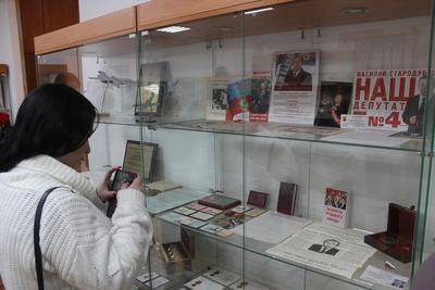 Но центральное место там занимает экспозиция, посвящённая Василию Александровичу, в том числе его мемориальный кабинет, перенесённый сюда из здания правления бывшего племзавода-колхоза имени Ленина, а ныне ООО «Спасское» имени Стародубцева.