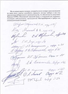 Депутаты-коммунисты все еще помнят и напоминают Вам, что ответственность за грубые нарушения законодательства, а также за отсутствие равных избирательных прав для всех кандидатов на выборах в столичную думу, несла и несет Московская городская избирательная комиссия и лично её председатель Валентин Павлович Горбунов. Именно в ответ на нарушения избирательного законодательства Московской городской избирательной комиссией стали возможны массовые летние протесты, которые обернулись репрессивными мерами со стороны органов правопорядка и закончились так называемым «московским делом».