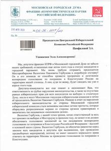 Депутаты фракции КПРФ в Мосгордуме обратились к главе ЦИК Э.А. Памфиловой с требованием отставки председателя Мосгоризбиркома В.П. Горбунова. Публикуем текст обращения.