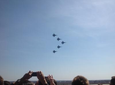 Летчики этих групп мирового класса провели для сотен собравшихся зрителей демонстрационные полеты. Причем они выполняли более сложные фигуры высшего пилотажа и в более сложных условиях (на высоте 100 метров), нежели они это делают на международных авиационных выставках, желанными участниками которых всегда являются.