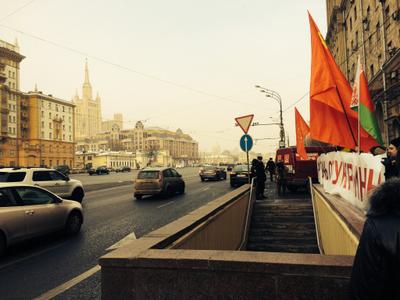 Московский горком КПРФ собрал на встречу-пикет около американского посольства на Садовом кольце до сотни граждан. Помимо депутатов и активистов к посольству пришли также представители Антиглобалистского движения России и Общества дружбы с Кубой. Над пикетчиками развевались флаги Украины, Белоруссии и Советского Союза. Кроме того, поддержать Украину и выступить против вмешательства США в дела этой страны пришли также представители сирийской диаспоры. Один из сирийцев рассказал, который считает себя пострадавшим от американского империализма, рассказал, что Вашингтон хочет сделать с Украиной то же, что и с его родиной.